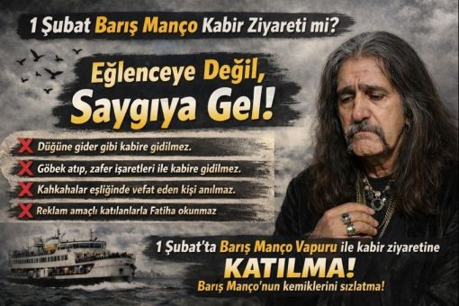 Barış Manço’ya Sesleniş Albümü ve 1 Şubat Kabir Ziyareti Hakkında Kamuoyu Duyurusu Barış Manço, yalnızca bir müzisyen değil; bu toprakların ortak vicdanı, kültürel hafızası ve kuşaklar arası köprüsüdür. Onu anmak, yalnızca bir tarih hatırlatması değil; duruş, üslup ve samimiyet meselesidir. Barış Manço Rock Topluluğu olarak hazırladığımız “Barış Manço’ya Sesleniş” albümü; bir anma çalışması değil, Barış Manço’nun fikirlerine, insan sevgisine ve müzikal mirasına doğrudan bir sesleniştir. Bu albüm, nostaljiye sığınmadan; geçmiş ile bugünü, saygı ve sorumluluk bilinciyle buluşturmayı amaçlamaktadır. Bu anlayış doğrultusunda, 1 Şubat tarihinde herhangi bir kabir ziyareti düzenlemeyeceğimizi kamuoyuna saygıyla bildiririz. Barış Manço’nun kendi ifade ettiği gibi, o doğum gününde anılmak istemiştir. Biz de bu sesi; bir ziyaretle değil, müzik yoluyla, kalpten kalbe ulaşan bir çağrıyla duyurmayı seçtik. Barış Manço’ya Sesleniş, bir yokluğa ağıt değil; bir yol göstericiye verilen sözdür. Kamuoyuna saygıyla duyurulur. Barış Manço Rock Topluluğu |
